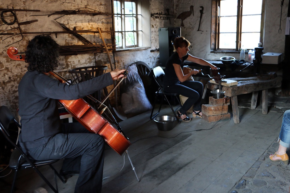 2014 Grains of Sounds, Gislövs smedja, performance i samarbete med Amit Sen, Simrishamn