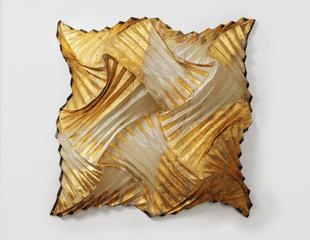 In the 1080s, I began treating metals, such as stainless steel mesh, as if they were textiles-bleaching, braiding, twisting and oxidizing them. I burnished the surfaces with gold, silver and copper nitrate, using brushes, blow torches, and wax to achieve different effects. For my work at the Lausanne Biennial in 1989. I worked directly with flat steel mesh, manually pleating it to create volume, repeatedly twisting the form, and coloring it with a blow torch.